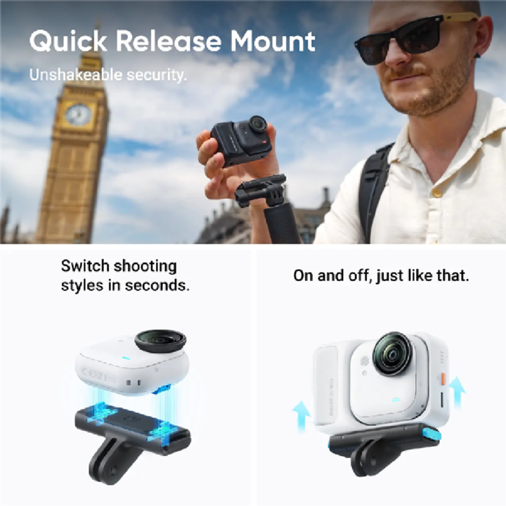 Insta360 GO Ultra Construida para el momento. ¿Por qué elegir GO Ultra? POV manos libres Colócala en el colgante magnético o en el Easy Clip magnético para capturar el mundo desde tu perspectiva sin esfuerzo. Ligera y portable Con el tamaño de un smartwatch y sólo 53 g, pero repleta de potencia y li...