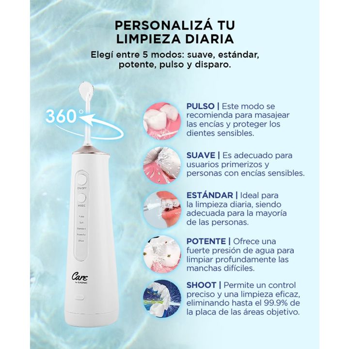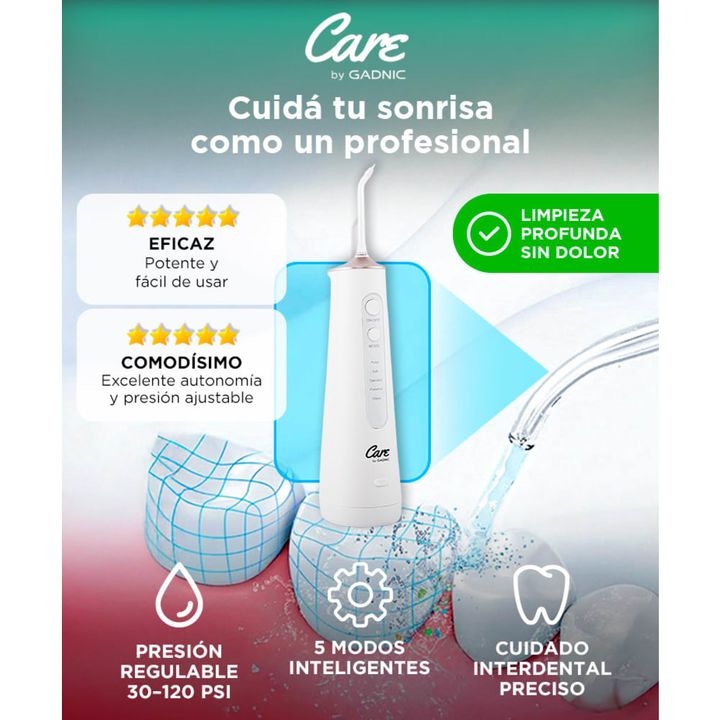 ¡Nuevo Irrigador Bucal XB8 Care by Gadnic! ¡Logra los resultados de una limpieza profesional vos mismo! El nuevo irrigador bucal XB8 es ideal para uso individual o familiar, incluye 6 puntas diferentes e identificables por colores. Múltiples opciones de modo: 5 modos para satisfacer las diferentes n...