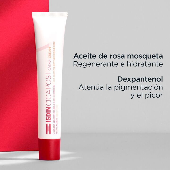 ISDIN Cicapost Crema contiene ingredientes que favorecen la reparación natural de la piel y mejora su apariencia. POST Cicatrices POST Quemaduras Superficiales POST Procedimientos Estéticos POST Sequedad Localizada POST Irritaciones POST Depilación POST Tatuajes Contiene ingredientes que favorecen l...