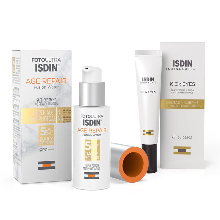Componentes Fotoprotector Isdin Age Repair Textura Fusion Water 50 Ml Código: 8429420190986 | SKU: 060021 1 uni Contorno Ojos Isdin Isdinceutics K Ox Eyes Bolsa Ojera 15 Ml Código: 8429420113374 | SKU: 061010 1 uni