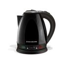 Jarra eléctrica JE-1256. Cuenta con una potencia de 2000 watts y una capacidad de 1.5 litros. Tiene cuerpo de acero inoxidable negro. Ofrece protección contra función sin agua. apagado automático y base giratoria 360° con guarda cable. Incluye indicador luminoso de encendido.