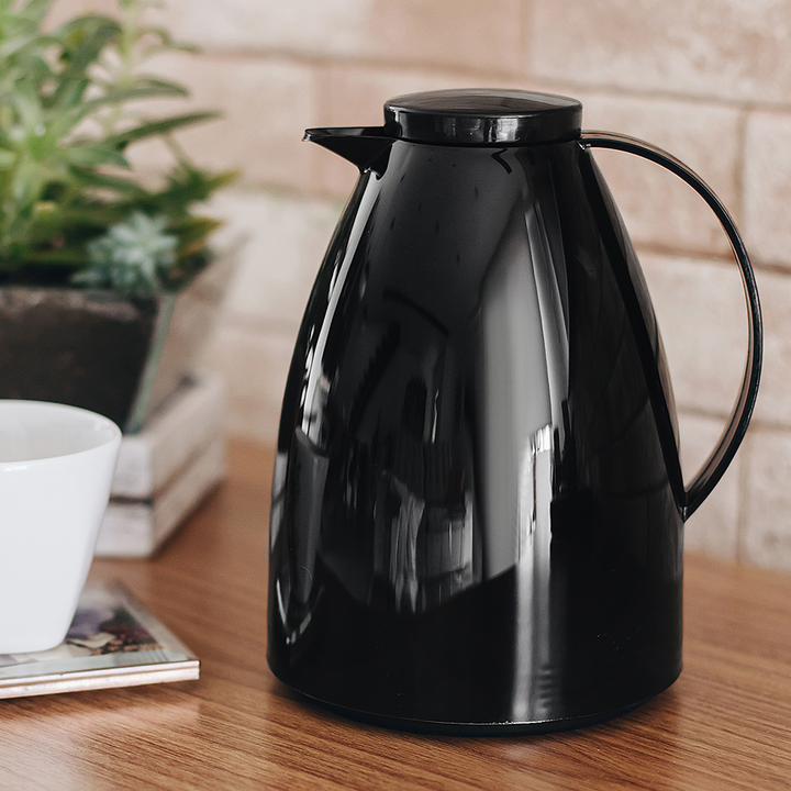 <p><em>*Medidas:</em><br /><em>Alto 20cm</em><br /><em>Largo con asa 17cm</em><br /><em>Base Diametro 14cm</em><br /><em>Diametro boca 4cm</em><br /><em>- Material: plastico</em><br /><em>- Capacidad: 750 Ml</em><br /><em>- Aislamiento Termico: Ampolla De Vidrio</em><br /><em>- Color: Negro</em><br ...