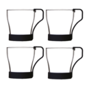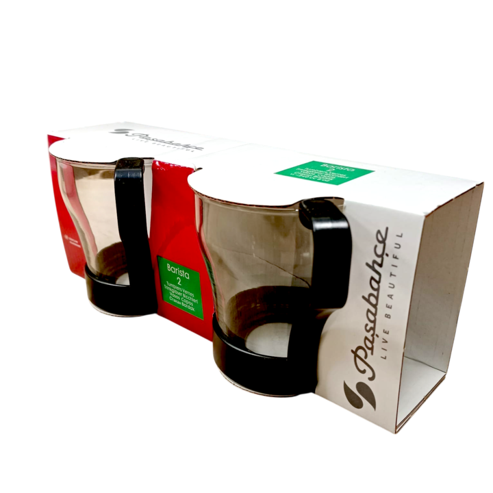 Set x 4 tazas de vidrio con asas y base de plastico negro resistente idela para bebidas calientes como cafe , te , mate , etc Asa y base plastico removible , ideal para lavar o usar el vaso. Medidas : Capacidad : 240 cc Medidas : Alto : 8,5 cms / Diametro superior : 7 cms / Diametro base : 6,5 cms A...