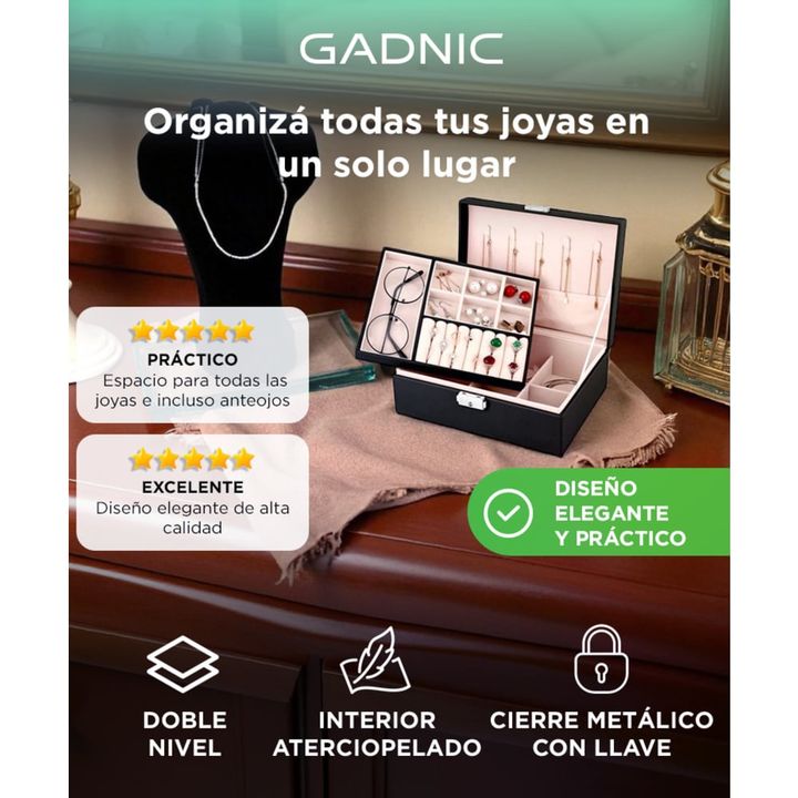 ¡Nuevo Joyero Gadnic ER5 Organizador De Accesorios! Esta caja de almacenamiento de joyas te permite mantener bien organizados tus collares, pendientes, anillos y pulseras de uso frecuente. Especificaciones Fácil de limpiar Diseño Simple Material de la Superficie: Cuero Material del interior: Terciop...