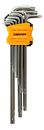 JUEGO DE 9 LLAVES TORX LARGAS L6950 LUSQTOFF T10 A T50 Fabricadas en acero al cromo vanadio 2X más resistentes al desgaste que las de acero al carbono, acabado satinado 3X más resistente a la corrosión, llaves de doble posición, Organizador plástico abatible Contenido: 9 llaves torx (T-10, T-15, T-2...