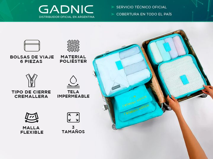 ¡Juego de Bolsas de Viaje de 6 Piezas Gadnic! Si eres un viajero frecuente, sabes lo importante que es mantener tus pertenencias organizadas y protegidas durante los viajes. Con el organizador de equipaje de Gadnic, podrás hacerlo de manera fácil y eficiente. Este conjunto de 6 organizadores de dife...