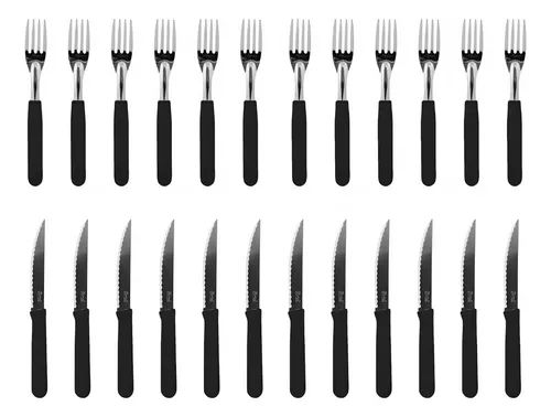 Set 24 cubiertos Tramontina. Material acero inoxidable y mango de plstico. Contiene 12 tenedores 12 cuchillos Colores disponibles