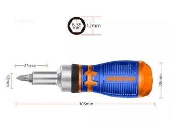El Desarmador Ratchet 8 En 1 de la marca Wadfow es una herramienta esencial para cualquier caja de herramientas. Este destornillador tipo Stubby está fabricado con material Cr-V, lo que garantiza su durabilidad y resistencia. El mango de este destornillador está hecho de goma, proporcionando un agar...