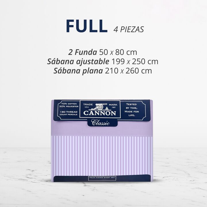 SÁBANAS CANNON 200 HILOS 2 PLAZAS FULL - Sabanas Cannon Classic Rayado - (Cuatro Piezas) - Composición: 100% algodón - Cantidad de hilos: 200 - Para colchones con medidas hasta: 1,40 x 1,90 x 0,30 m - Transpirable, duradera y cómoda - Fácil cuidado, apta todo tipo de lavarropas - Resistentes a la de...