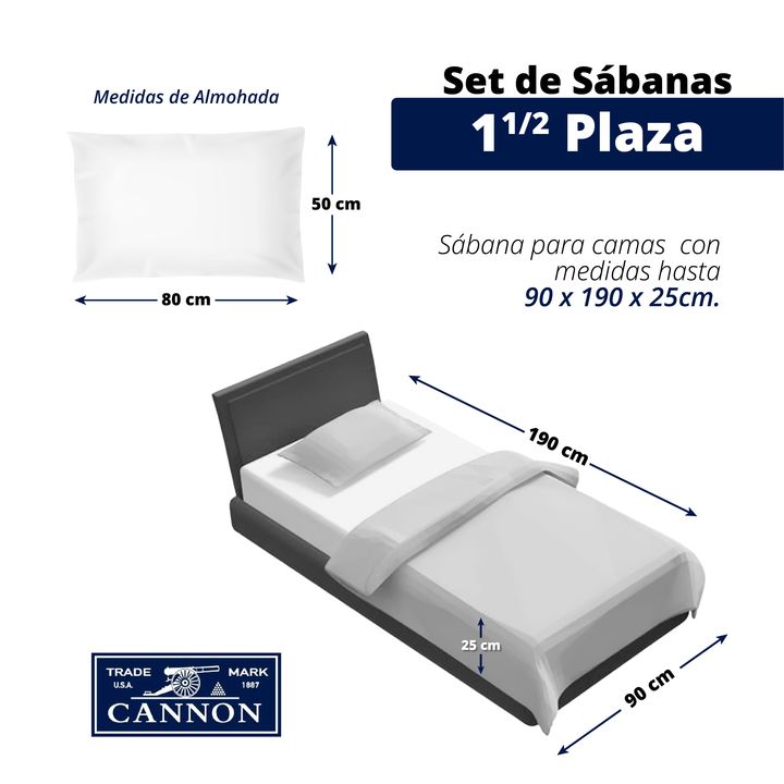 JUEGO DE SABANAS CANNON 200 HILOS 1 ½ Plazas - Juego de Sabanas Cannon 1 ½ Plazas 200 hilos - Modelo Colors Liso - Composición: 100 % algodón - 200 hilos - Transpirable, duradera y cómoda - Fácil cuidado , apta todo tipo de lavarropas - Resistentes a la decoloración y al frisado - Diseño simple y el...