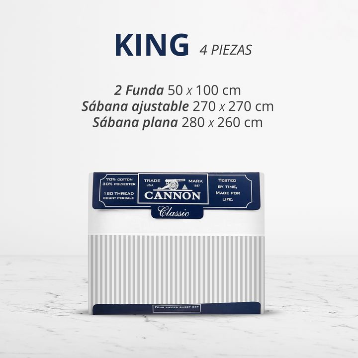 SÁBANAS CANNON COLORS 200 HILOS KING (Cuatro Piezas) - Sabanas Cannon King - (Cuatro Piezas) - Modelo Classic Rayado - Composición: 100% algodón - Cantidad de hilos: 200 - Transpirable, duradera y cómoda - Fácil cuidado , apta todo tipo de lavarropas - Resistentes a la decoloración y al frisado - Di...