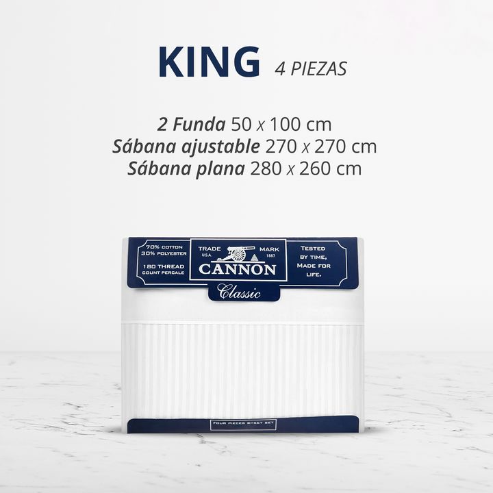 SÁBANAS CANNON CLASSIC 200 HILOS KING (Cuatro Piezas) - Sabanas Cannon King - (Cuatro Piezas) - Modelo Classic Rayado - Composición: 100% algodón - Cantidad de hilos: 200 - Transpirable, duradera y cómoda - Fácil cuidado , apta todo tipo de lavarropas - Resistentes a la decoloración y al frisado - D...