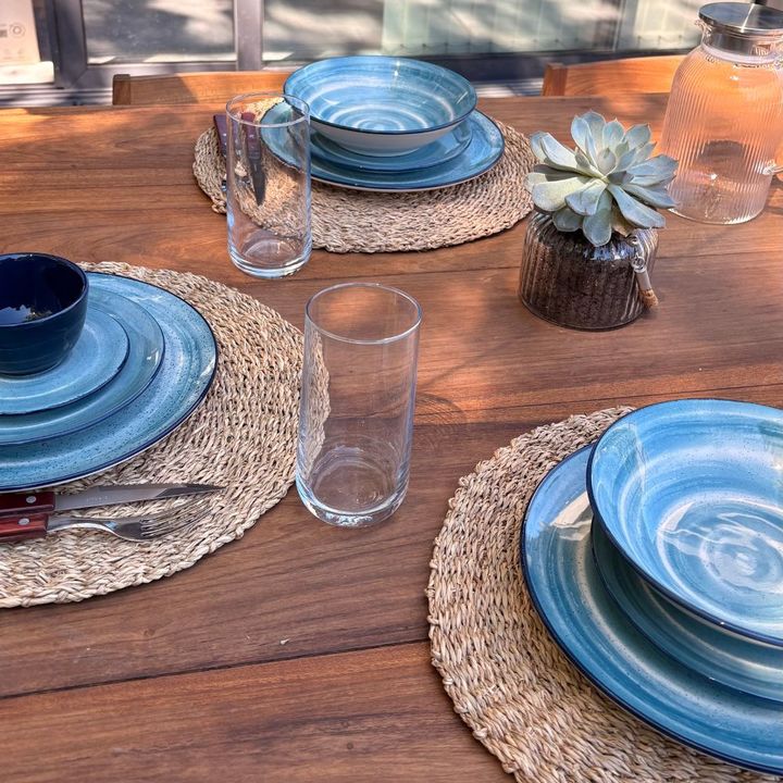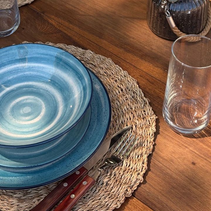Diseño inspirado en el movimiento de las olas y la belleza natural del océano. la línea Oceânica trae la armonía de los tonos azules a la mesa.