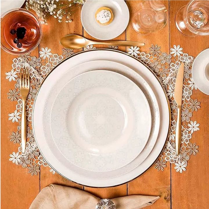 <p><em>- Apto para Lavavajillas y Microondas</em><br /><em>- Material: Porcelana<br />- Modelo: Dress<br />- Origen: Brasil</em><br /><em>- Marca: Oxford</em><br /><br /><em>El Set esta compuesto por:<br /></em><br /><em>- 6u. de platos playos 28cm</em><br /><em>- 6u. de platos hondos 23.5cm</em><br...