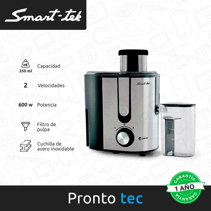 Nada mejor que un vaso de jugo freso cuando hace calor, o en cualquier momento del día. Sumá vitaminas y minerales a tu cuerpo mezclando diferentes combinaciones de frutas y verduras, con la juguera Smart-tek es mucho más fácil. Elegí entre las 2 velocidades y aprovechá el recolector de pulpa para e...