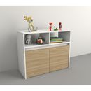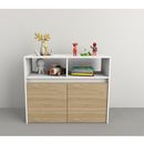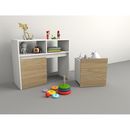 Módulo juguetero de melamina de alta resistencia. Dos cajones con ruedas individuales, lo que permite su completa extracción y traslado. Dos espacios superiores de guardado. Sistema Minifix. Color Olmo Finlandés y Blanco Medidas: Ancho: 0.86 mts. Alto: 0.70 mts. Profundidad: 0.36 mts.