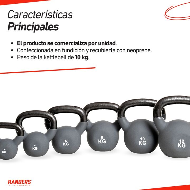 Dale variedad a tu entrenamiento con la Kettlebell ARG-NKET-010 de 10 kg. Confeccionada en fundición y recubierta con neoprene de primera calidad, esta pesa rusa importada ofrece durabilidad y un agarre cómodo para cada ejercicio. Su diseño ergonómico permite movimientos fluidos y seguros, ideal tan...
