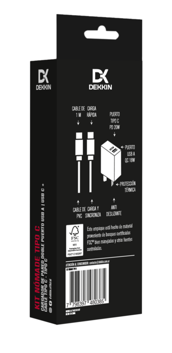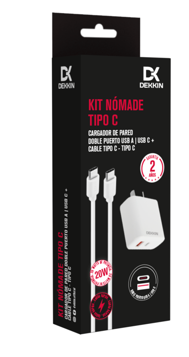 Kit nómade tipo c cargador de pared doble puerto USB A - USB C Cable tipo C - tipo C cable de plástico PVC carga rápida