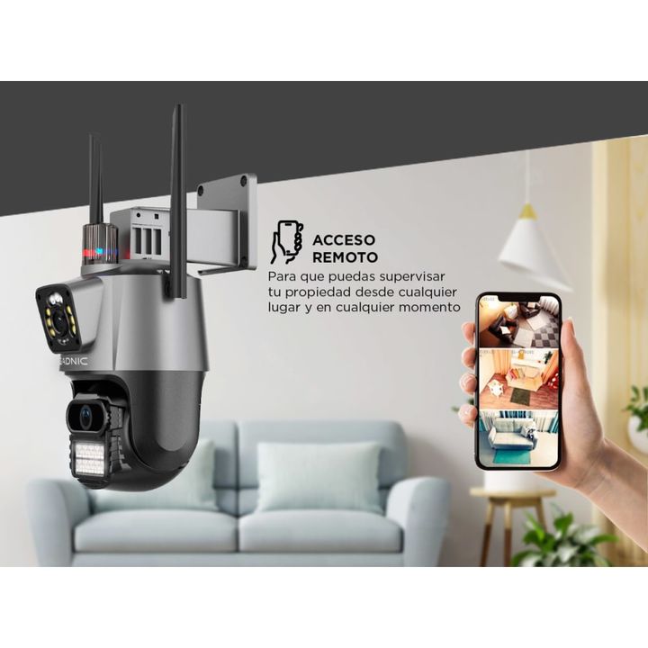 ¡Presentamos la Cámara de Seguridad Dual, una solución de vigilancia avanzada para proteger lo que más importa! Con su lente dual, esta cámara ofrece lo mejor de ambos mundos. Un lente fijo proporciona una vista amplia y constante, mientras que el PTZ te permite controlar el movimiento y el zoom de ...