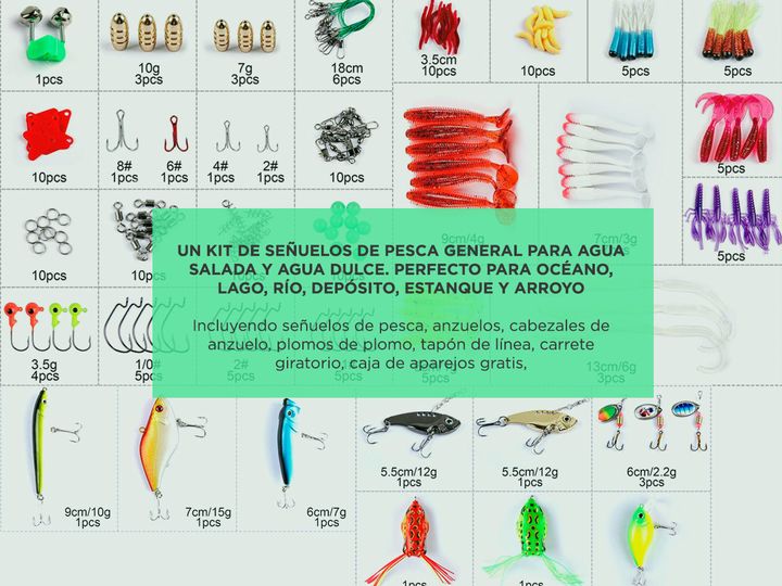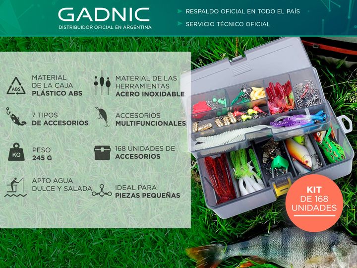 ¡Nuevo kit de pesca de 168 piezas by Gadnic! El nuevo set de pesca es ideal para entusiastas y profesionales de la pesca, la variedad de cebos, anzuelos y señuelos lo convierten en el kit profesional más completo y fácil de transportar. Su caja construida en plástico durable de ABS con compartimient...