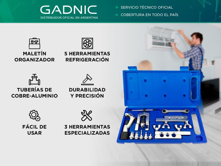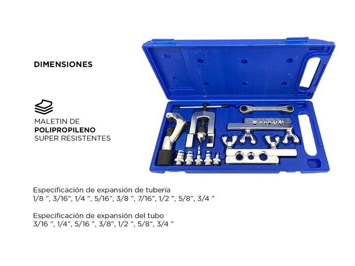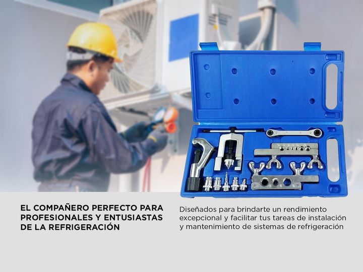 Descubre el Kit de Herramientas de Refrigeración, el compañero perfecto para profesionales y entusiastas de la refrigeración. Nuestro kit incluye tres herramientas especializadas: una pestañadora, un expansor y un cortador, diseñados para brindarte un rendimiento excepcional y facilitar tus tareas d...