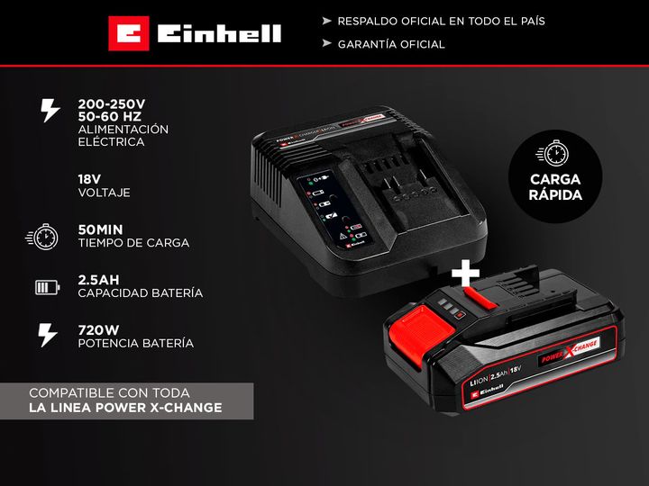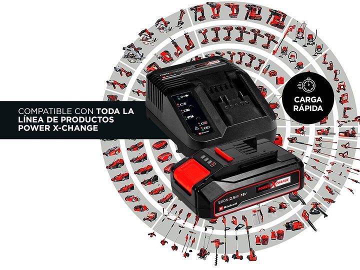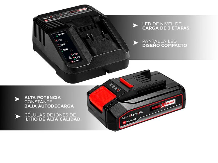El Starter Kit Einhell PXC 18V 2,5 Ah es la base ideal tanto para empezar a trabajar con el surtido Power X-Change como para ampliarlo. El Starter Kit con una batería Power X-Change de 18V y 2,5 Ah y el cargador rápido forman parte del sistema de baterías Power X-Change de Einhell, que se puede comb...