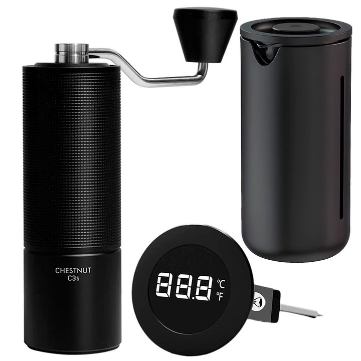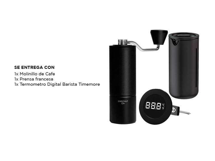 Especificaciones Molinillo de Café Timemore Manual Capacidad: 20-25g Configuraciones de molienda: 35 (cerveza turca a fría+) Materiales: Aluminio, Acero, Silicona Cuerpo y refuerzo: Aluminio fresado de 1 pieza Capacidad para: Espresso y filtro Ajuste de molienda: Escalonado Cuerpo texturizado: Para ...