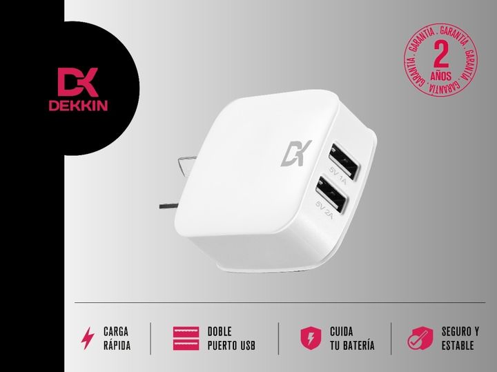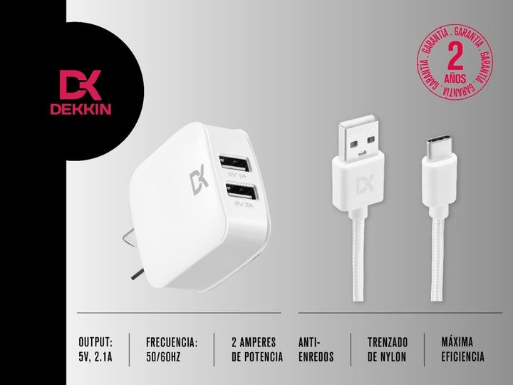 CARACTERÍSTICAS: - Doble puerto de entrada USB - Frecuencia: 50 Hz - 60 Hz - Entrada: 240V - 0.35 A - Salida: 5V - 2.0 A - Largo del cable: 1 m - Material del cable: Nylon trenzado, más duradero y resistente a los tirones - Entrada del cable: USB a USB tipo C - Material del conector: Aluminio CONTEN...