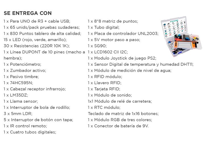 Descubre el Kit Arduino Uno R3 Compatible de Gadnic, diseñado especialmente para aquellos que desean adentrarse en el fascinante mundo de la electrónica y la robótica. Este completo kit incluye todos los componentes necesarios para comenzar tu viaje en la creación de proyectos interactivos y educati...