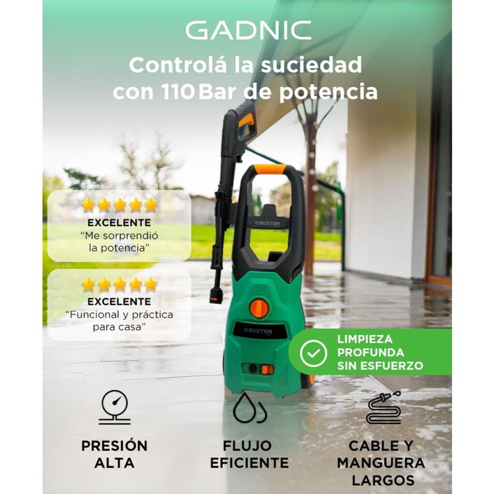 Potencia, versatilidad y eficiencia: La Hidrolavadora Eléctrica Gadnic LT316-1400A es la herramienta perfecta para quienes buscan una limpieza profunda y rápida. Con una potencia de 1600 PSI, podrás eliminar la suciedad más difícil de tus superficies exteriores y vehículos con facilidad. Diseño efic...