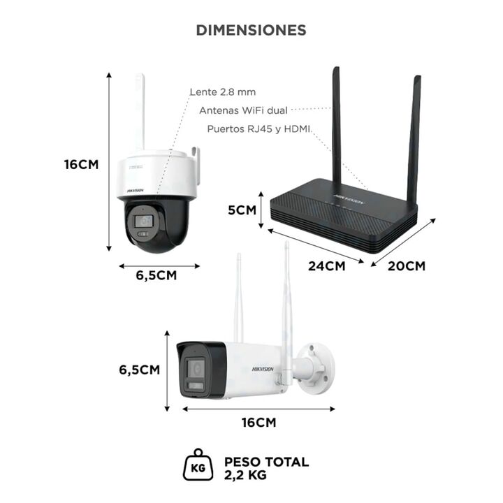 Seguridad inteligente y conectividad total El Kit Hikvision EasyLink NKS424W03H ofrece una solución completa para mantener tu hogar o negocio siempre protegido. Incluye un grabador NVS y dos cámaras IP WiFi de 4MP, que combinan calidad de imagen, facilidad de instalación y control remoto. Imágenes n...