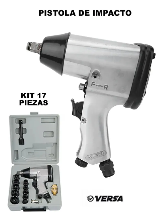 PISTOLA DE IMPACTO VERSA NEU130 + KIT 17 PIEZAS CON MALETIN El kit neumatico incluye una pistola de impacto reversible de 1/2 junto a un conjunto de accesorios esenciales para aplicaciones profesionales. Diseñado para talleres y servicios técnicos, ofrece una solución integral que combina potencia, ...