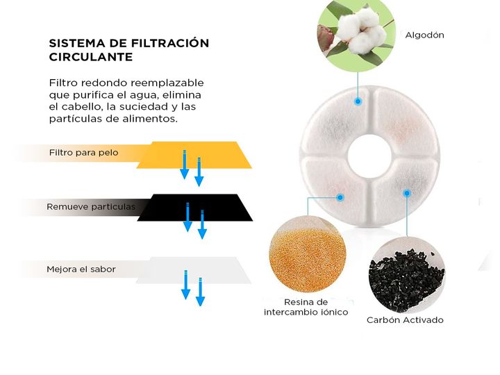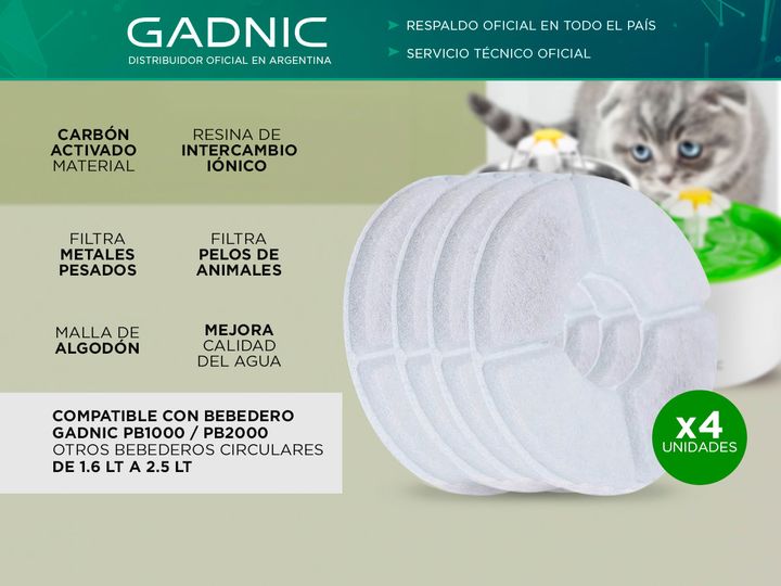 ¡Kit x4 filtros intercambiables para fuente de agua bebedero de mascotas! Compuesto por una capa de algodón sintético, carbón activado y una resina de intercambio iónico. Pueden filtrar pelos de animales, metales pesados ??y mejorar el sabor del agua para que las mascotas puedan beber agua limpia y ...