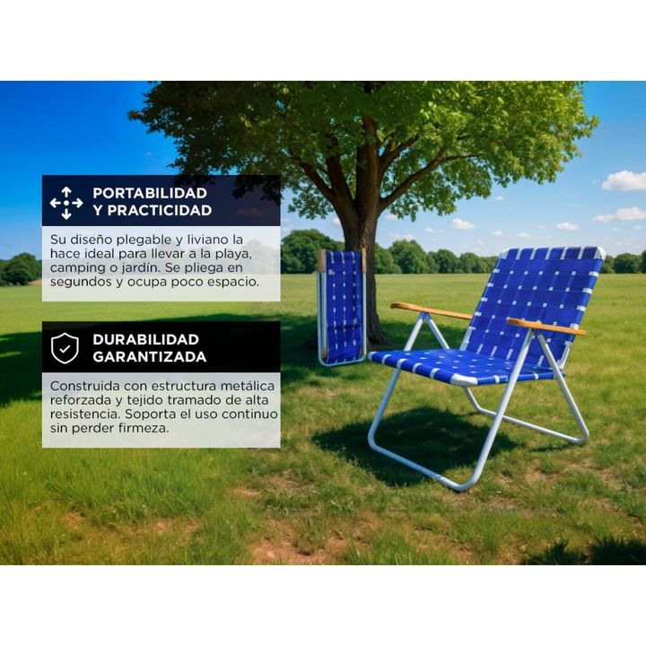 5 Posiciones Reclinables: Adaptá tu descanso con su respaldo ajustable en cinco niveles. Ideal para leer, tomar sol o simplemente relajarte al aire libre. Diseño Plegable y Liviano: Se pliega fácilmente y ocupa poco espacio, permitiéndote llevarla a todos lados: playa, camping, jardín o escapadas de...