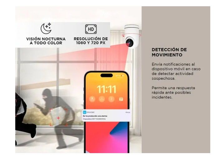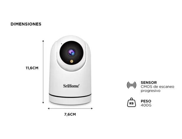 Nueva Cámara de Seguridad Srihome 1080P WiFi con inclinación panorámica: Resolución Alta: Captura imágenes en alta definición (HD) para garantizar detalles claros y nítidos. Ideal para identificar rostros y objetos con precisión. Movimiento Panorámico y de Inclinación: Permite una visión de 360° hor...
