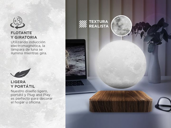 ¡Entretenida Lámpara Lunar 3D Gadnic! Alucinante Luna en 3D flotante y giratorio. Utilizando inducción electromagnética, la lámpara de luna se ilumina mientras gira. Nuestro diseño ligero, portátil y Plug and Play hace que sea perfecto para cualquier decoración del hogar u oficina. Sorprende a tus h...