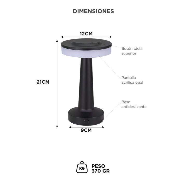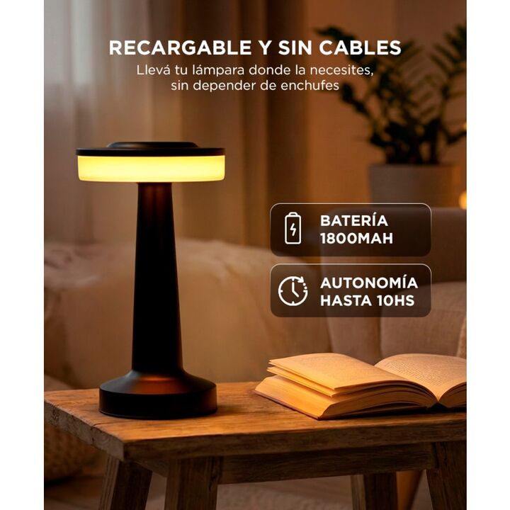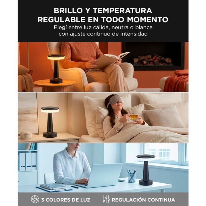 Encendido táctil con dimmer: Ajustá la intensidad de la luz con solo tocarla. Tres modos de iluminación para cada momento: cálido, neutro y blanco. Batería recargable sin cables: Usala donde quieras: dormitorio, escritorio o comedor. Olvidate de los enchufes y llevá la luz con vos. Luz LED cálida y ...