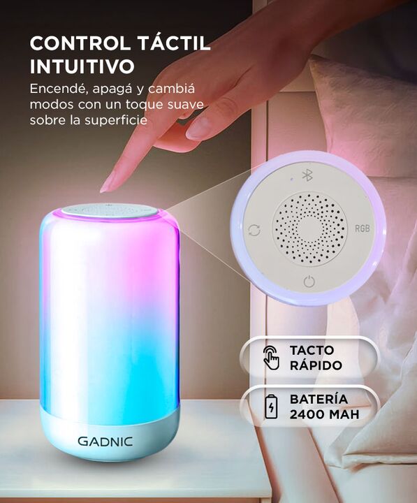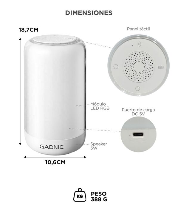 Iluminación RGB dinámica y envolvente: La lámpara inteligente Gadnic LUNA0023 ofrece una amplia gama de colores para crear ambientes personalizados. Ideal para relajación, lectura suave o decoración moderna de interiores. Parlante BT 5.1 integrado para música ambiental: El speaker de 3W brinda un so...