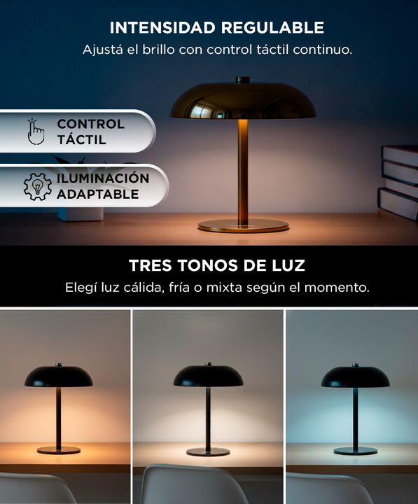 DISEÑO QUE TRANSFORMA EL ESPACIO La lampara de mesa led Gadnic combina una estetica moderna con materiales metalicos de alta calidad. Su pantalla semicircular genera una iluminacion suave y envolvente que realza cualquier ambiente. Ideal para escritorios mesas de noche o espacios de lectura. Su pres...
