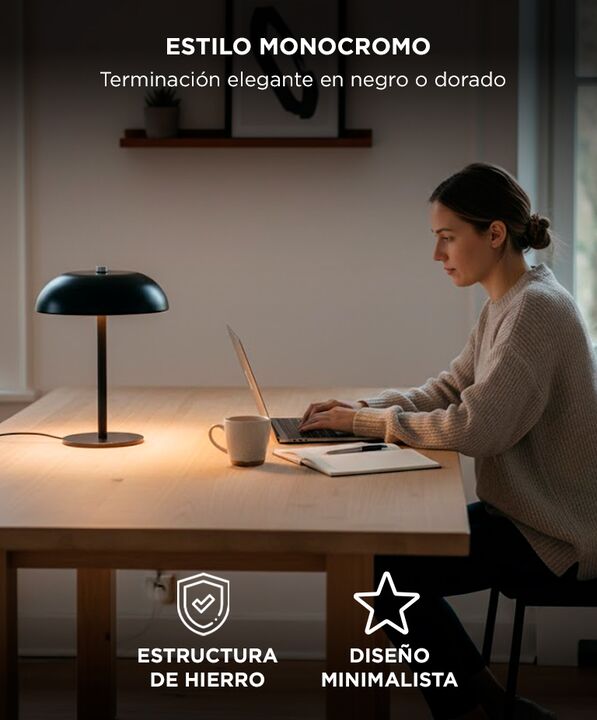 DISEÑO QUE TRANSFORMA EL ESPACIO La lampara de mesa led Gadnic combina una estetica moderna con materiales metalicos de alta calidad. Su pantalla semicircular genera una iluminacion suave y envolvente que realza cualquier ambiente. Ideal para escritorios mesas de noche o espacios de lectura. Su pres...