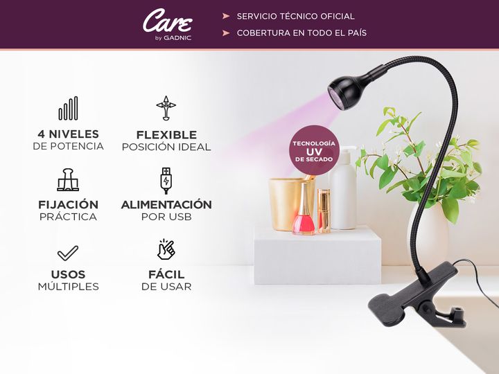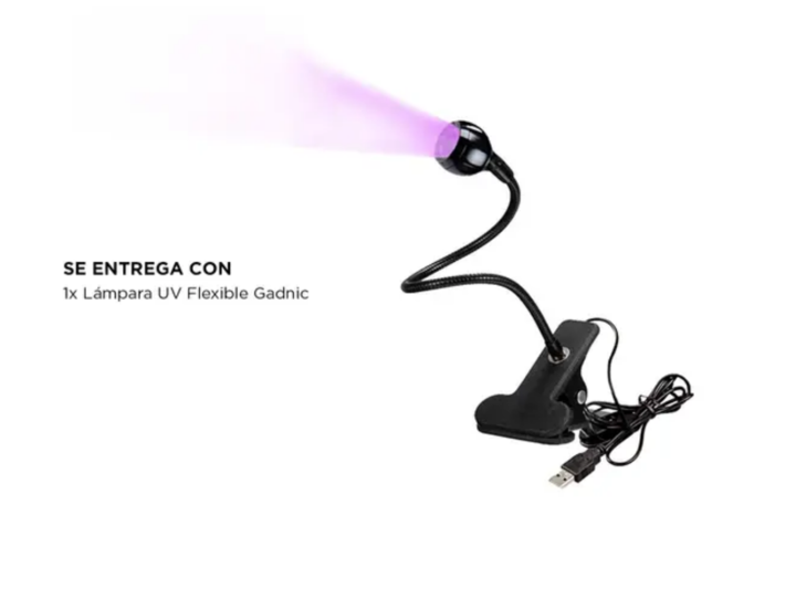 Acerca de Lámpara de Secado de Uñas Gadnic Flexible Con Tecnología UV ¡Nueva lámpara UV de escritorio Gadnic! Esta lámpara de tecnología UV es ideal para trabajos de precisión por su formato y potencia. Es liviana y transportable, por lo que siempre podrás llevarla donde necesites en tu maletín prof...