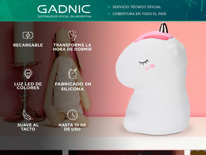 ¡Deja que la magia ilumine las noches de tus pequeños con la Lámpara de Unicornio Luminoso Gadnic! Fabricada en suave silicona, esta adorable lámpara no solo es un accesorio encantador, sino también funcional y seguro para el dormitorio de los niños. Con una toma de carga a través de interfaz MicroU...