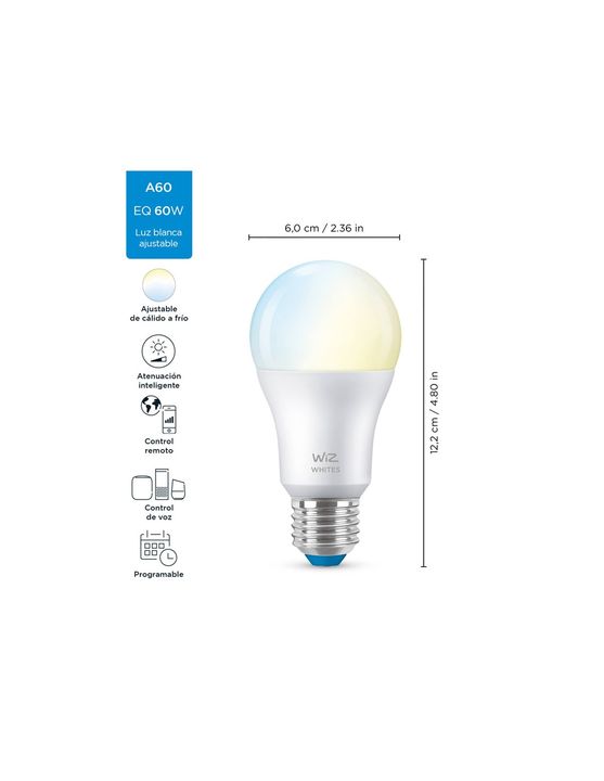 Traiga iluminación centrada en el ser humano a sus entornos de vida y trabajo con esta bombilla blanca inteligente LED A60. Vuelva a instalar en cualquier pantalla de lámpara y elija las mejores condiciones de iluminación que más le convengan de una amplia gama que comienza con un blanco cálido y su...