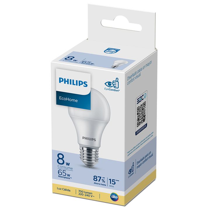 La lámpara EcoHome LEDBulb 8W E27 3000KHV de Philips está diseñada para ofrecer una solución eficiente y duradera en la sustitución de lámparas incandescentes, halógenas y de bajo consumo. Compatible con bases E27, proporciona un rendimiento óptimo en aplicaciones de iluminación general, con signifi...