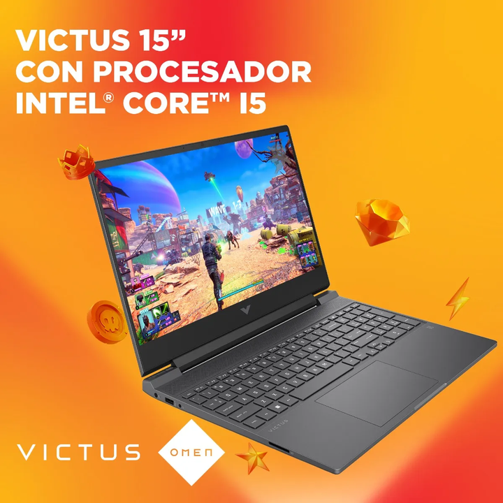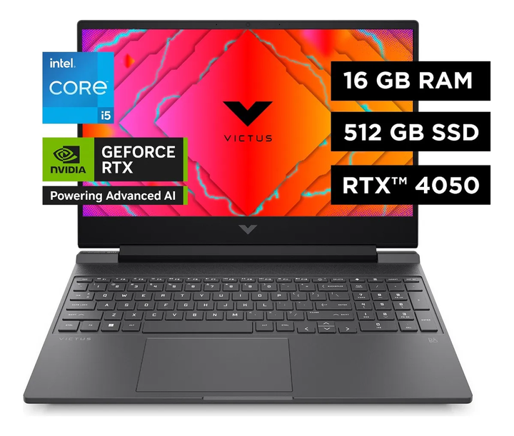 NOTEBOOK GAMER DE 15,6 FULL HD HP VICTUS 15-FA2701LA CON WINDOWS 11 HOME + NVIDIA GEFORCE RTX 4050 6GB GDDR6 Intel Core i5 / 16 GB DDR4 / 512 GB SSD B81JGLA La HP Victus Gaming 15 Laptop está a la altura de los juegos más grandes y los mejores jugadores. Con procesadores Intel® Core™ serie H, gráfic...