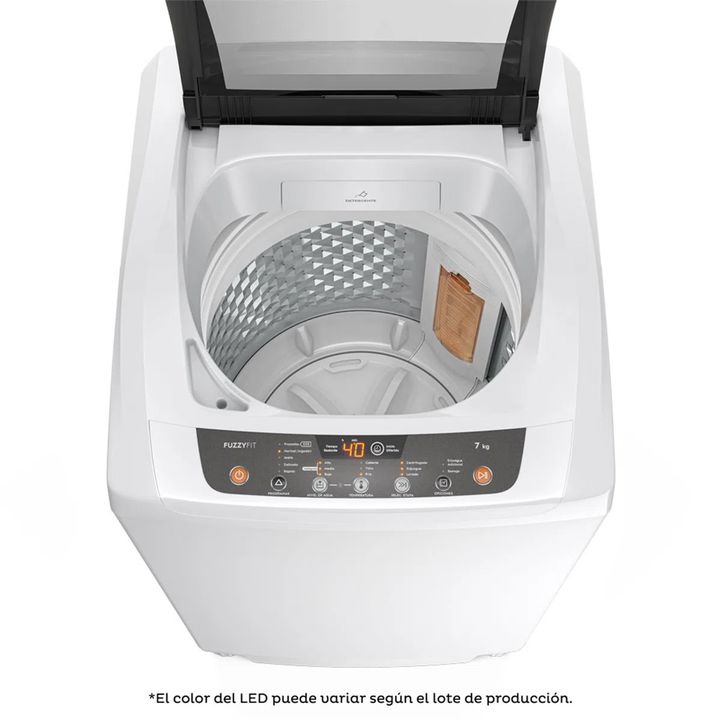 El Lavarropas de Carga superior Gafa FuzzyFit de 7kg, innova en el concepto de cuidado de la ropa. Garantiza un lavado completo e inteligente, gracias a su sistema Fuzzy Logic que selecciona automáticamente la cantidad de agua en función del peso de la ropa en el tambor, optimizando el tiempo de lav...