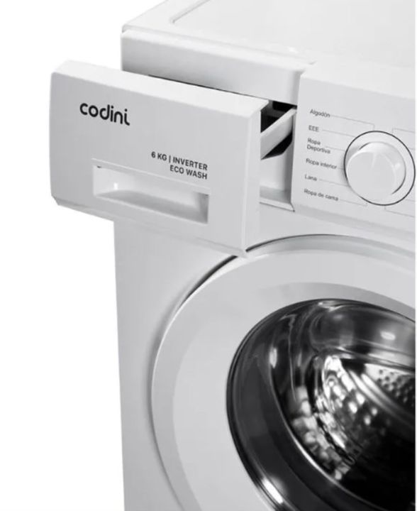 LAVARROPAS CARGA FRONTAL AIAFE6010B 6K 1000RPM A+++ BLANCO INVERTER CODINI -16 Programas -Eficiencia Energética: A+++ -6 Kg de capacidad -Lavarropas automático con 10 años de garantía en el motor. -Programas varios como lavado rápido, bebé y función vapor. -Motor Inverter BLDC: Ahorra agua y energía...