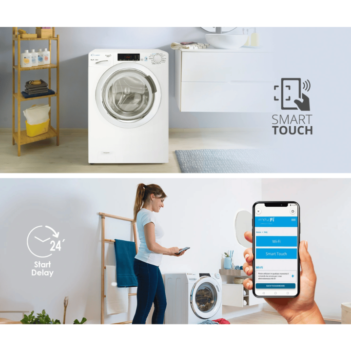Lavarropas Candy Smart Carga frontal GrandO Vita 8Kg - GVS128T Simplifica tu lavado, simplifica tu día. Características Capacidad de 8 Kg 1200 RPM 16 Programas y Lavados rápidos 14´,30´y 44´ Color Blanco Medidas (ANxALxPR): ): 60 x 85 x 58 cm Contenidos Smart Start Delay: hasta 24hs Smart Touch (NFC...