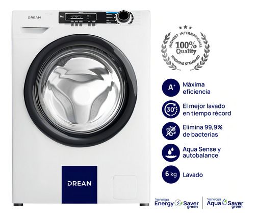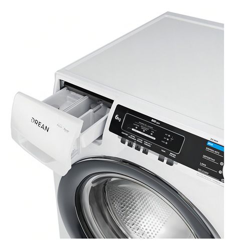 Lavarropas Carga Frontal 6 Kg Blanco Drean - LFDR0608LB0 - Lavarropas automático de carga frontal. - Capacidad de 6 Kg. - Color blanco. - Velocidad regulable hasta 800 RPM. - Eficiencia energética A+. - Sistema de lavado europeo. - 15 programas. - Display LED y perilla retroiluminada. - Bloqueo para...