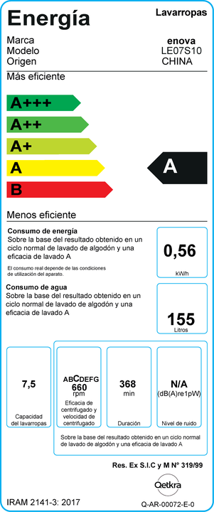 Lavarropas carga superior eficiencia energética clase A con panel digital y 7 programas de lavado. Doble entrada de agua para lavar en frío y caliente con tapa de vidrio templado con control de cierre. Velocidad de centrigurado máximo de 680 RPM.